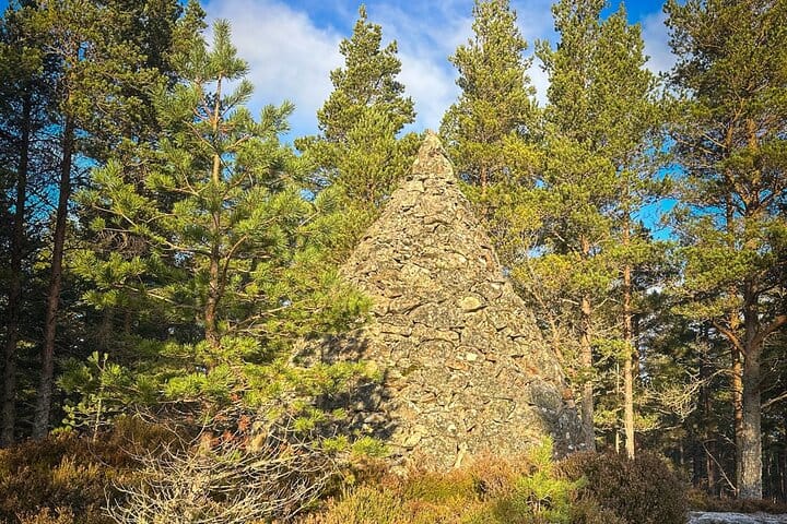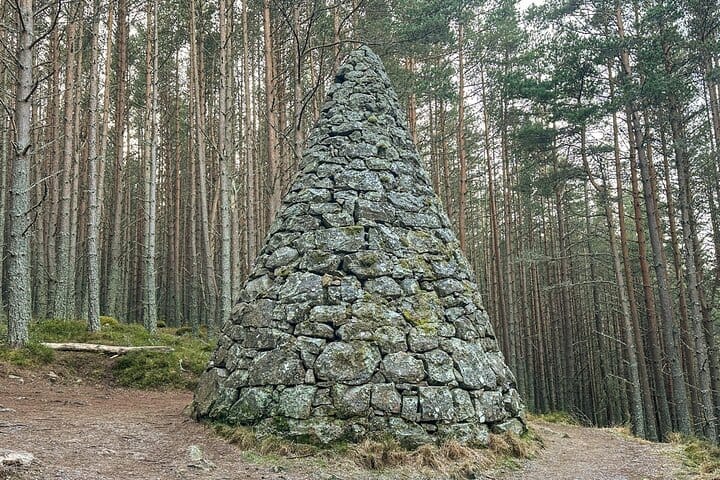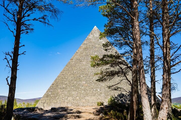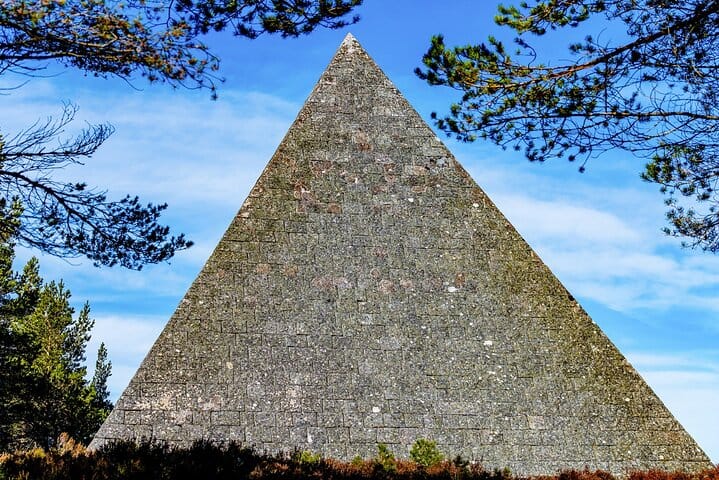The Royal Cairns which are found in the Balmoral Castle estate, are a collection of stone monuments, erected by Queen Victoria to commemorate family milestones. The most prominent and famous is the 50-foot-high Prince Albert’s memorial Pyramid, a large granite structure and the only pyramid in Scotland. The walk is through stunning forest and features panoramic views of Balmoral Castle, Royal Deeside and the Cairngorm Mountains.